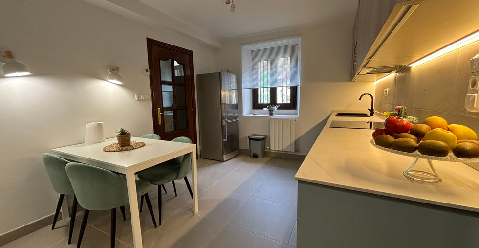 La planta baja (40m2) consta de hall, amplia cocina, hermoso salón comedor y baño completo. Tiene además acceso directo a uno de los garajes.